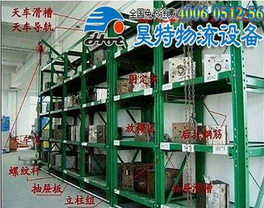 抽屜式模具貨架具有承重力強(qiáng)、層板可抽出、吊模方便等特點(diǎn),這和貨架各個(gè)部件設(shè)計(jì)組合具有重要關(guān)系,以下是對(duì)帶天車型抽屜式模具貨架的介紹: