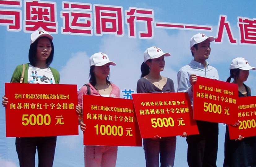本公司消息    2008年5月8日是第61個(gè)世界紅十字日,蘇州市紅十字會昨天在石路銀河廣場舉行了“紅十字與奧運(yùn)同行——人道、環(huán)保、健康”主題紀(jì)念活動。5月7日,奧運(yùn)火炬手、大陸向臺灣白血病患者成功捐獻(xiàn)骨髓的首位志愿者、紅十字會志愿者杭彬也來到現(xiàn)場,為北京奧運(yùn)加油。我司也積極的參加了此次愛心活動,希望可以把自己的一份愛心捐獻(xiàn)給世界更多需要幫助的人們。