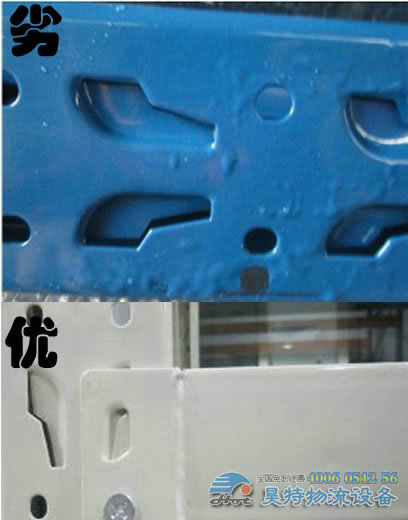 (2)觀察貨架的層板以及立柱的內(nèi)側(cè),看看脫漆現(xiàn)象是否嚴(yán)重。另外,如果有脫漆,觀察脫漆處斷層,看看是否有銹層。