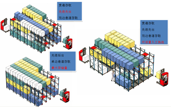 2,貨物先進先出,先進后出可自由選擇3, 遙控操作、無需駛?cè),進出貨效率高 4,抗地震安全性能大大高于駛?cè)胧截浖堋?.與駛?cè)胧截浖?/a>、壓入式貨架、重力式貨架比,綜合成本更低