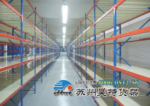 (2)中型擱板式貨架,單元貨架每層載重量一般在 200~ 800 kg 之間,總承載一般不大于 5000kg 。單元貨架跨度通常不大于 2.5m ,深度不大于 1m ,高度一般在 3m 以?xún)?nèi)。如果單元貨架跨度在 2m 以?xún)?nèi),層載在 500kg 以?xún)?nèi),通常選無(wú)梁式中型擱板式貨架較為適宜;如果單元貨架跨度在 2m 以上,則一般只能選有梁式中型擱板式貨架。無(wú)梁式中型貨架與有梁式中型貨架相比,層間距可調(diào)余地更大,更穩(wěn)固、漂亮,與環(huán)境的協(xié)調(diào)性更好,更適于一些潔凈度要求較高的倉(cāng)庫(kù);有梁式中型擱板式貨架則工業(yè)化特點(diǎn)強(qiáng)一些,較適用于存放金屬結(jié)構(gòu)產(chǎn)品。中型擱板式貨架應(yīng)用廣泛,適用于各行各業(yè)。