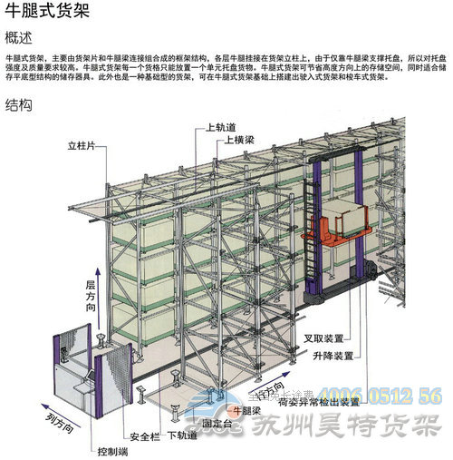 牛腿式貨架系統(tǒng)的穩(wěn)定性是所有種類貨架中較為薄弱的,為此貨架不宜過高,一般在10m以內(nèi),另外系統(tǒng)中還需加設拉固裝置。