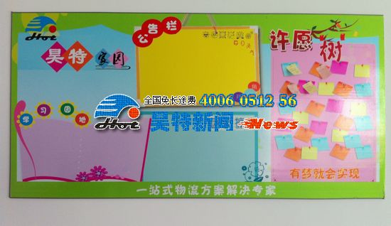7月9日昊特貨架公司的文化墻正是啟用,在原來”以人為本,人本為善”的基礎(chǔ)上全面升級,新的昊特家園文化欄包括四大模塊“學(xué)習(xí)園地、公告欄、昊特掠影及許愿樹;每一個模塊都體現(xiàn)出了我們后勤人員的用心度,他們想把最貼近生活,最溫暖的祝福送給每一位來訪昊特及即將來訪的家人朋友們;昊特的文化已經(jīng)滲入到我們每一位家人的血液里,因?yàn)槲覀冇兄餐囊粋夢想!