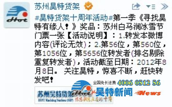 蘇州貨架活動官方微博連接請點擊:http://t.qq.com/p/t/134595007042137
