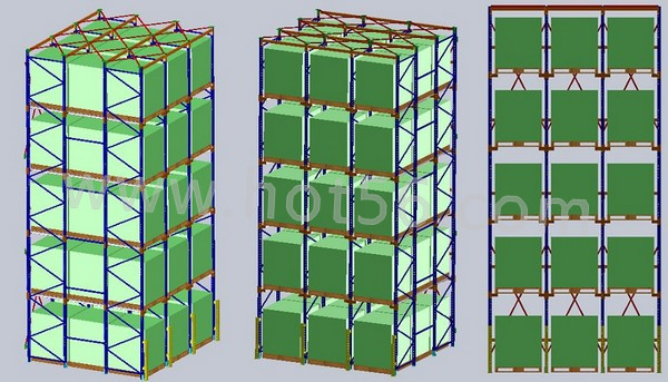 4)駛?cè)胧截浖苋褰咏M裝式結(jié)構(gòu),柱片為裝配式結(jié)構(gòu),靠墻區(qū)域的貨架總深度最多可以設(shè)計(jì)為7個托盤深度以內(nèi),中間區(qū)域可兩邊進(jìn)出的貨架總深度通常在9個托盤深度以內(nèi),以提高叉車存取的效率和可靠性。