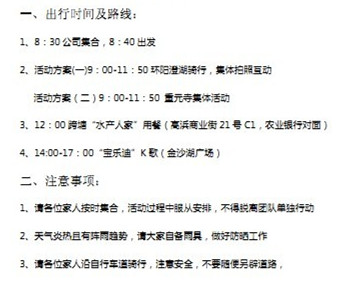 本公司消息:近期,由于公司發(fā)展的需要,昊特蘇州貨架正在招賢納新,而為了讓新同事快速的融入昊特大家庭,公司人事部將于明天組織家全體昊特家人出游。且下周將參加昆山物流展會,昊特的的倉儲貨架、搬運設(shè)備以及其它倉庫貨架配套產(chǎn)品將集體亮相,目前已經(jīng)進入到最后沖刺階段,本次出游也為了緩解家人的壓力,振奮家人們的熱情。具體的安排如下: