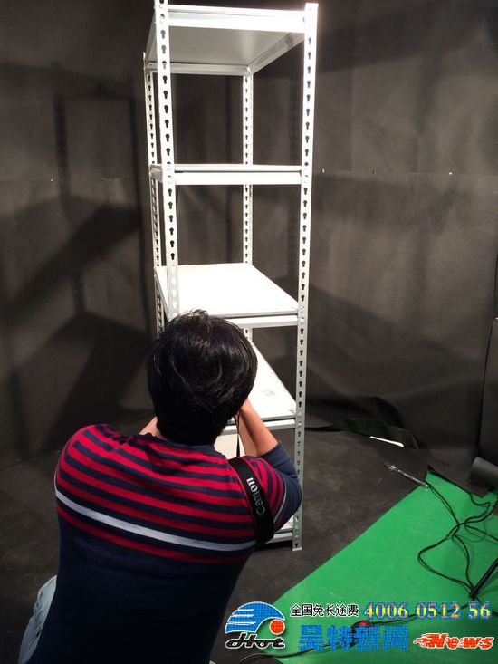 下圖為:陳老師進(jìn)行貨架展示的拍攝工作