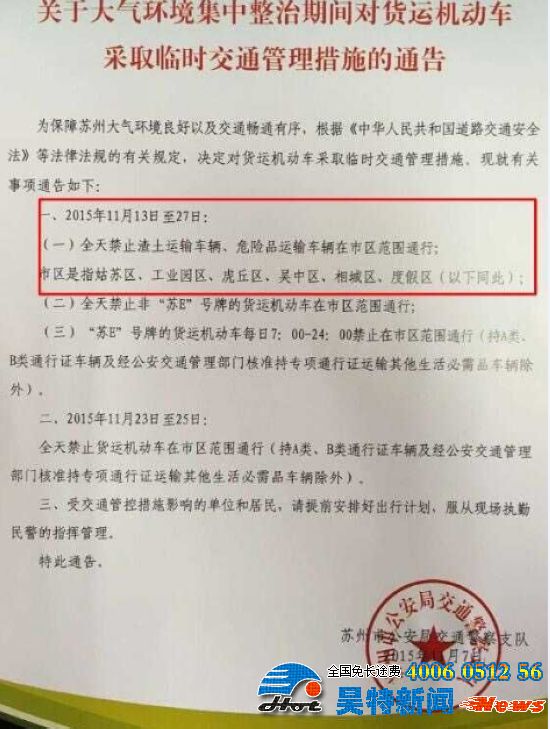 2015年11月13日起,蘇州進(jìn)入大氣環(huán)境集中整治期,對(duì)貨運(yùn)機(jī)動(dòng)車輛實(shí)施限行,限行的區(qū)域包含姑蘇區(qū)、工業(yè)園區(qū)、虎丘區(qū)、吳中區(qū)、相城區(qū)、度假區(qū),而我司倉(cāng)儲(chǔ)貨架產(chǎn)品運(yùn)輸基本為貨車,為此,我司對(duì)近期送貨做以下的調(diào)整。