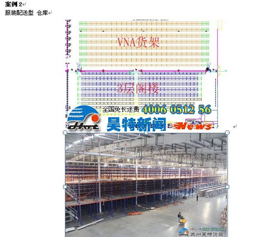 這個(gè)方案中主要選用標(biāo)準(zhǔn)的VNA貨架,3層閣樓貨架,前移式叉車,托盤搬運(yùn)車,貨架層網(wǎng)、背網(wǎng)等;客戶存放的是服裝產(chǎn)品,產(chǎn)品有整托盤存放,拆零處理全部在閣樓上進(jìn)行;對(duì)于整件進(jìn)出貨物全部采用托盤存放,而對(duì)于拆零小部件物品采用3層閣樓,不但充分利用倉庫高度,而且增加了SKU存放數(shù)量,提高揀貨效率,整個(gè)項(xiàng)目從實(shí)施到最后遵循成本和效率最優(yōu)化。