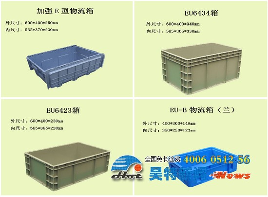 物流用的塑料周轉(zhuǎn)箱的規(guī)格很多,形狀也多樣。但大部分周轉(zhuǎn)箱的發(fā)展趨勢都向標(biāo)準(zhǔn)型塑料托盤配套尺寸靠近(例如長600mm×寬400mm或長400mm×寬300mm)。都為標(biāo)準(zhǔn)尺寸的周轉(zhuǎn)箱可以配套塑料托盤尺寸同步配套使用,方便產(chǎn)品的單元化管理。