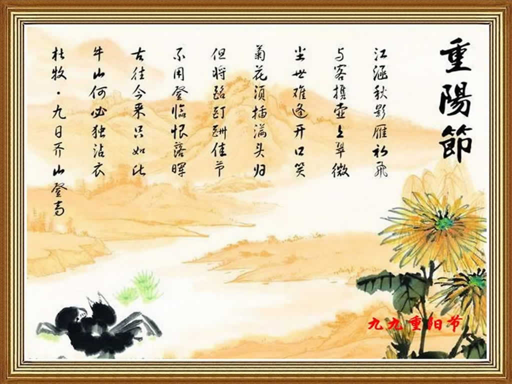 “金秋十月爽,九九話重陽。日月兩重歸,相映地久長。”農(nóng)歷九月九日,為傳統(tǒng)的重陽節(jié)。因為古老的《易經(jīng)》中把“六”定為陰數(shù),把“九”定為陽數(shù),九月九日,日月并陽,兩九相重,故而叫重陽,也叫重九,古人認為是個值得慶賀的吉利日子,并且從很早就開始過此節(jié)日。九九重陽,因為與“久久”同音,九在數(shù)字中又是最大數(shù),有長久長壽的含意。今天的重陽節(jié),被賦予了新的含義,在1989年,我國把每年的九月九日定為老人節(jié),傳統(tǒng)與現(xiàn)代巧妙地結(jié)合,成為尊老、敬老、愛老、助老的老年人的節(jié)日。