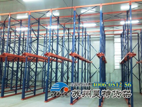 通廊式貨架又稱為駛?cè)胧截浖芑蜇炌ㄊ截浖堋J且环N不以通道分割的、連續(xù)性的整棟式貨架,在支撐導(dǎo)軌上,托盤按深度方向存放,一個(gè)緊接著一個(gè),這使得高密度存儲(chǔ)成為可能。