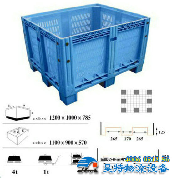 2。網(wǎng)格式四向進(jìn)叉 外尺寸: 1200×1000×760mm內(nèi)尺寸: 1110×910×600mm,動載:1噸,靜載:4噸,貨架:0.8噸。