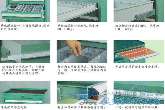(7)根據(jù)需要可自由選擇配置不同高度的抽屜,充分滿足生產(chǎn)現(xiàn)場(chǎng)的需要。