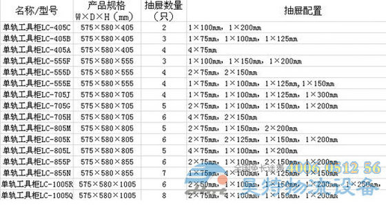單軌式工具柜規(guī)格展示: